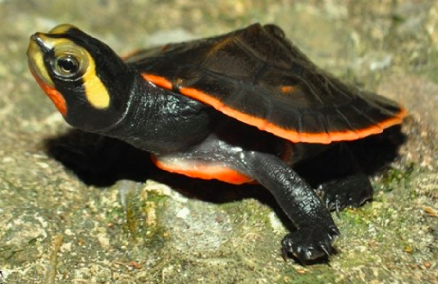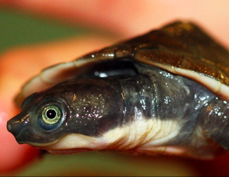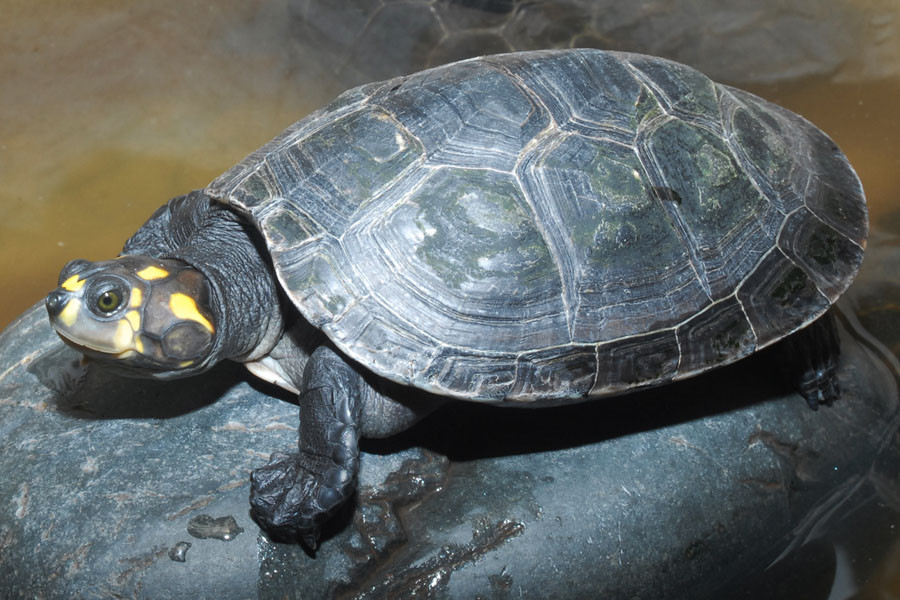 Head and neck: Head brown to black; chin lighter color. Body Carapace- yellow, greenish brown, o...